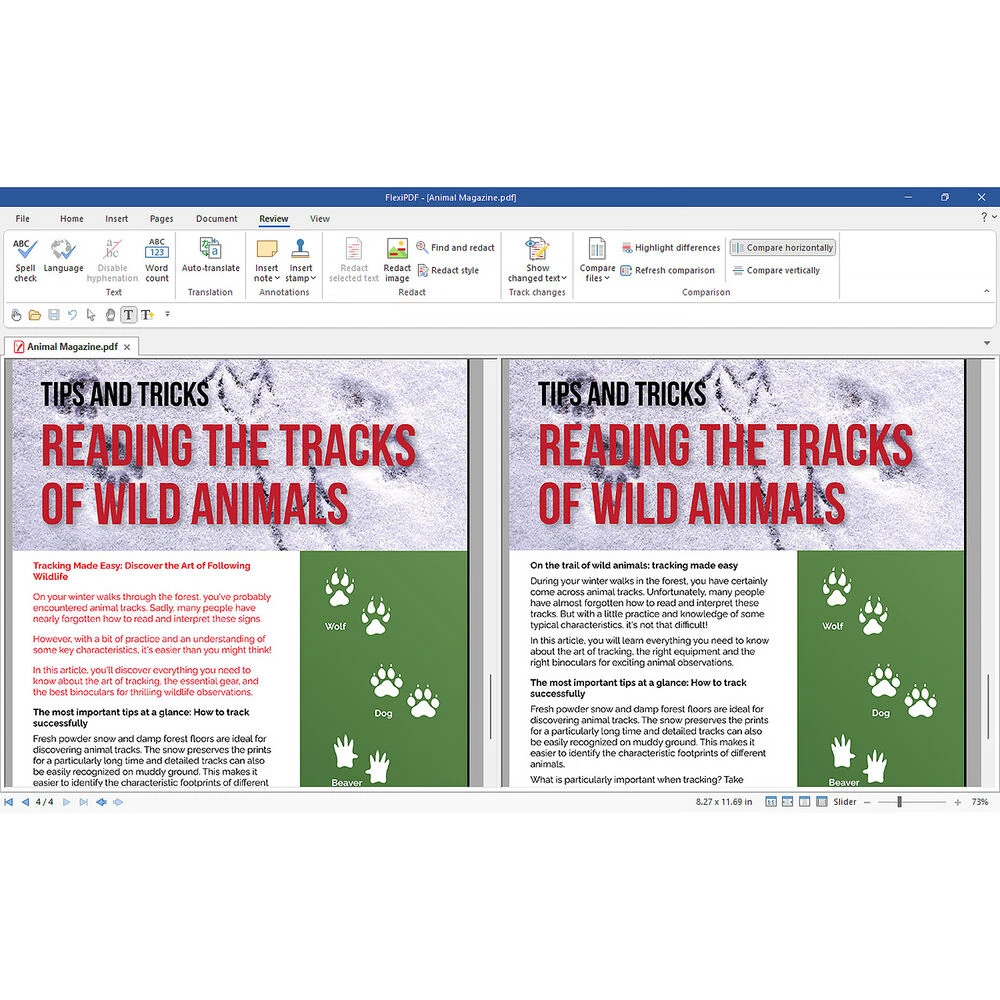 With FlexiPDF, you can change, add, delete, and format text in PDF files across paragraphs, columns, and pages. The built-in multi-language spell check helps to avoid spelling errors, and automatic hyphenation ensures that your text looks good.