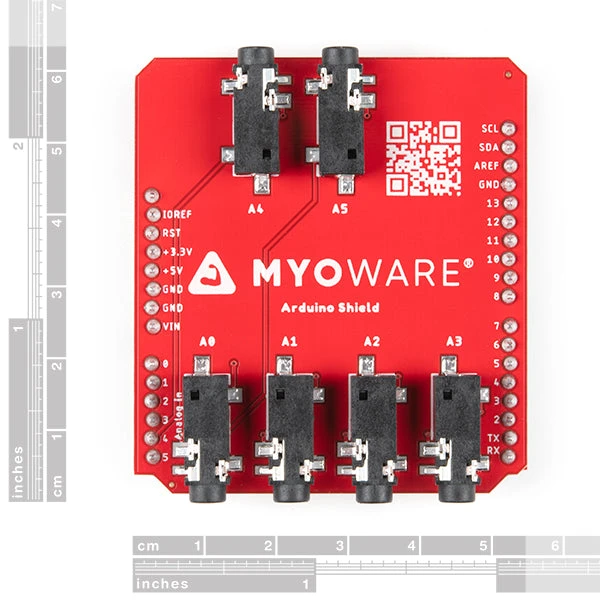 The MyoWare® 2.0 Arduino Shield is designed to easily connect up to six MyoWare 2.0 Muscle Sensors and Link Shields using 3.5mm TRS-to-TRS audio cables. The board comes pre-populated with male headers so all you would need to do is stack it on your Arduino and connect the sensors to read up to six muscle groups!