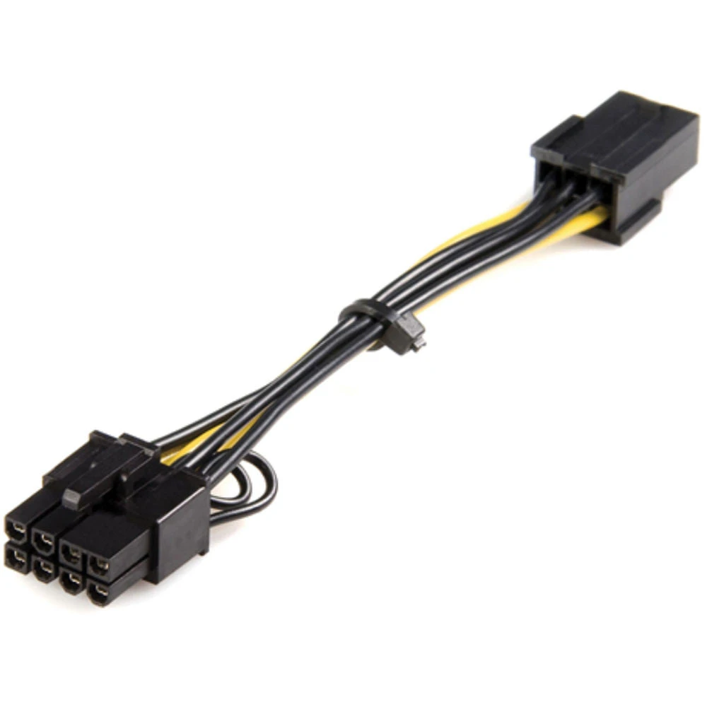 The 6-pin to 8-pin PCIe Power Adapter Cable from Startech lets you connect a standard 6-pin PCIe power connection provided by your computer power supply to newer ATI and nVIDIA video cards that require an 8-pin power connection.