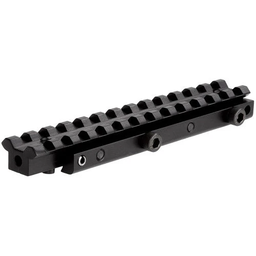 This aluminum, black satin finish 11mm to Picatinny Adapter from Sun Optics USA lets you use Picatinny-compatible optics and accessories on firearms with stock 11mm rails. The base’s adjustable elevation permits a larger impact point correction range for long shots. The two-screw clamp keeps the adapter securely fastened to the original rail.