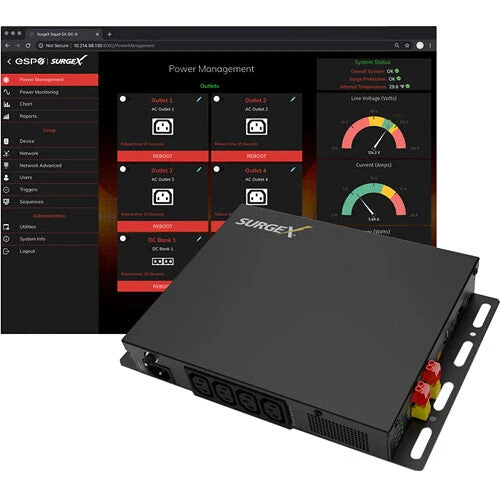 The Squid Power Management System from SURGEX is an AC and DC power distribution unit with power conditioning, control, and monitoring. Thanks to its small form factor, you can mount it to a wall, a table, or against the face of an equipment rack. It features an internal web server that provides configuration, output control, monitoring, and the retrieval of data logs. Multiple security and communication interface options are also supported.