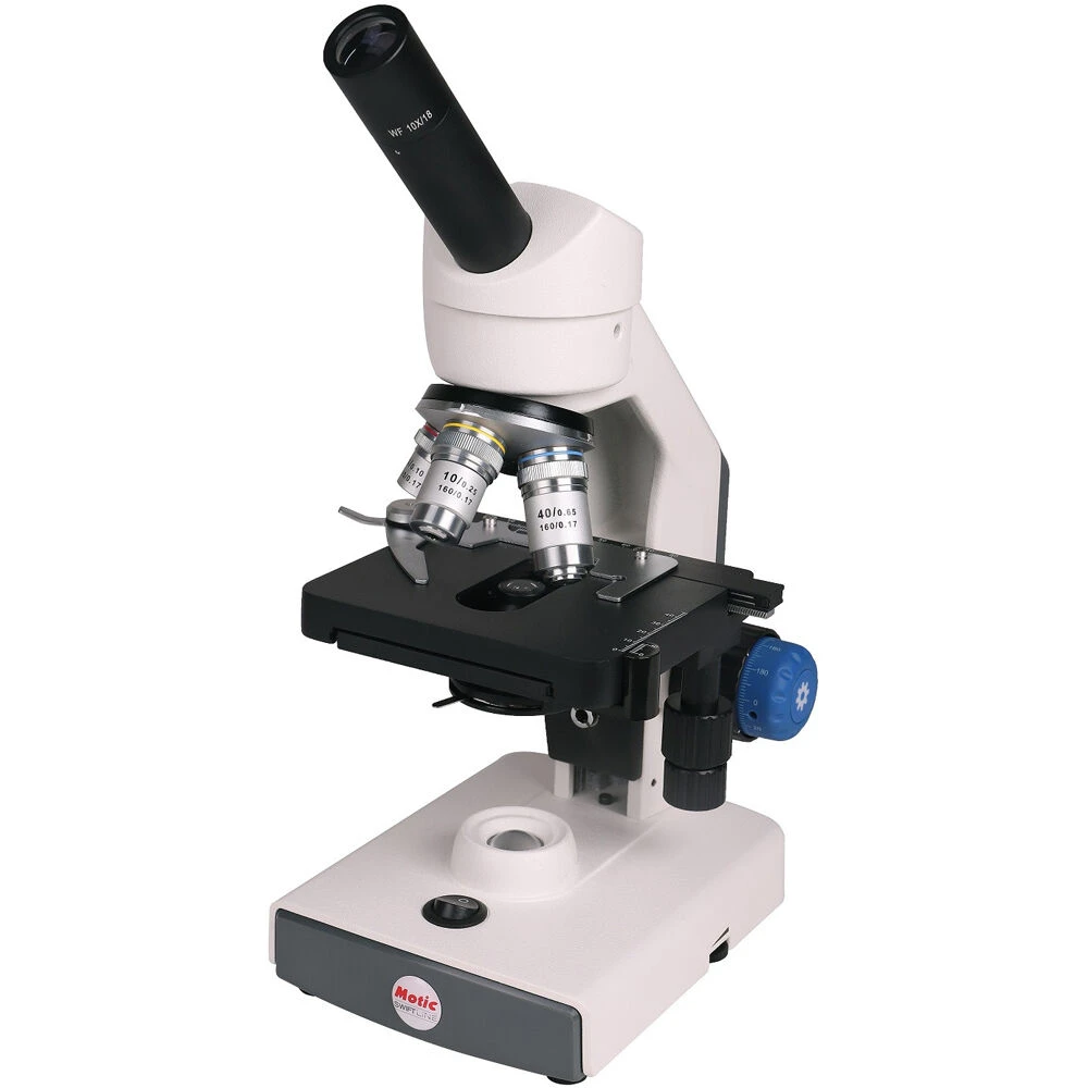 The M2652C Monocular Cordless LED Microscope from Swift is a three-objective 45° inclined microscope designed for middle school and high school students alike. Achromatic DIN optics minimize image distortions and deliver consistent views on all three magnification settings. The focusing and illumination systems have been configured to make viewing specimens fast and easy. It has separate fine and coarse focus adjustment dials while the included mechanical stage is a specimen holder with a safety rack stop to prevent damage to slides and objective lenses.