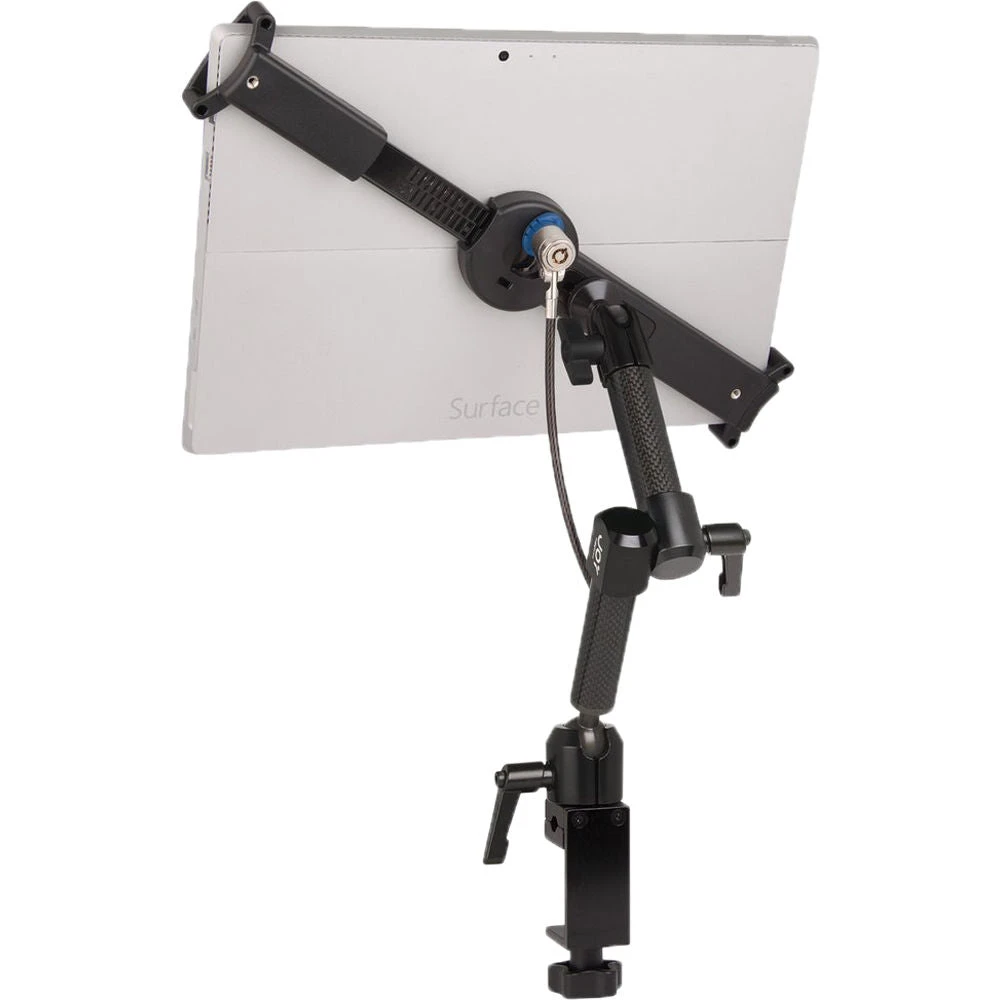 Mount your 10 to 13″ tablet to a variety of locations with the LockDown Universal C-Clamp Dual Arm Mount with Key Cable Lock from The Joy Factory . This mount can be clamped onto a variety of surfaces including flat counters, poles, and rods making it easy to mount your tablet in nearly any environment. Once mounted, the adjustable bracket can be secured with the key cable lock while the LockDown function ensures the mount and attached tablet remain secure. Additionally, the Universal C-Clamp Dual Arm Mount offers enhanced maneuverability, including the ability to rotate the attached tablet a full 360° for either portrait or landscape viewing.
