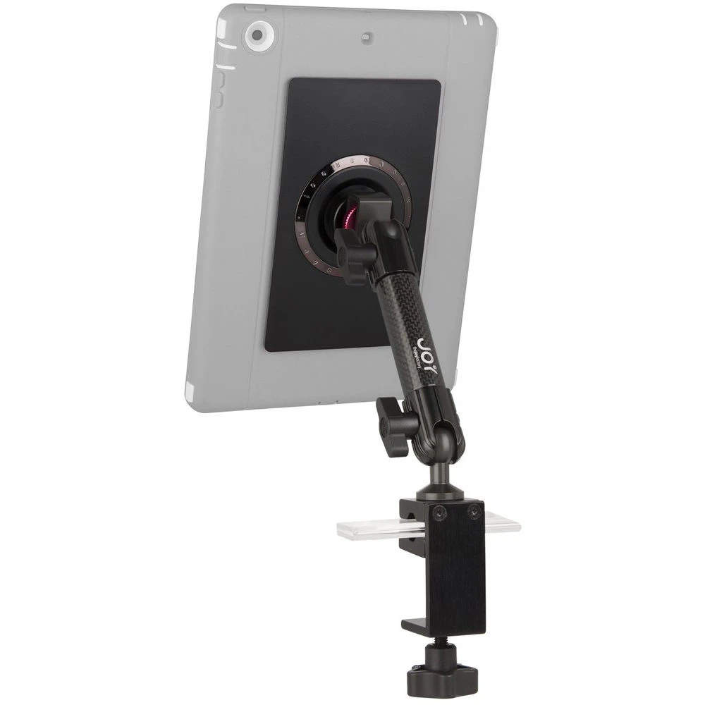 The MagConnect Universal Module C-Clamp Mount from The Joy Factory was designed for tablet cases or enclosures with a flat, smooth surface and converts them into a MagConnect case that is able to be used with any MagConnect mount. The carbon fiber arm of this tablet mount attaches to your iPad or tablet and is designed for use on flat counters, poles, and rods such as warehouse shelving, corporate reception areas, office workspaces, back kitchens, restaurant front counters, creative organizations, photography studios, and more.