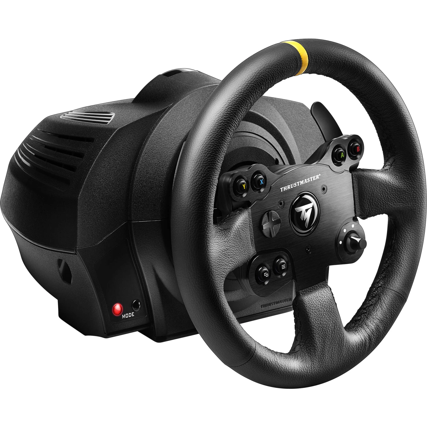 Buckle up for an action packed racing experience with the TX Racing Wheel Leather Edition from Thrustmaster. This racing simulation set comes with a racing wheel, a wheel base, and a pedal set. The TM Leather 28 GT wheel features genuine hand-stitched leather on the wheel’s entire surface and is detachable from its base. In addition, the T3PA pedal set is fully adjustable allowing you to configure the pedal spacing and pressure sensitivity. Rest your feet on its textured footrest and drive confidently knowing that the wide, weighted pedal set will provide you with the stability you need.