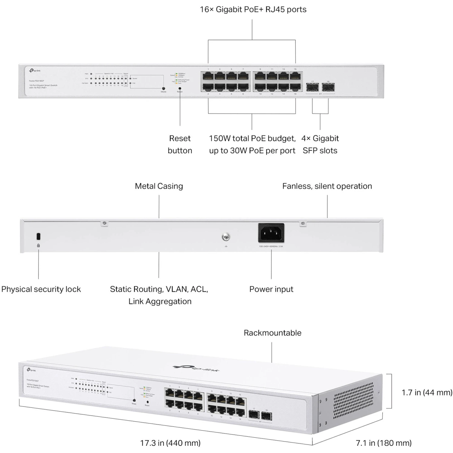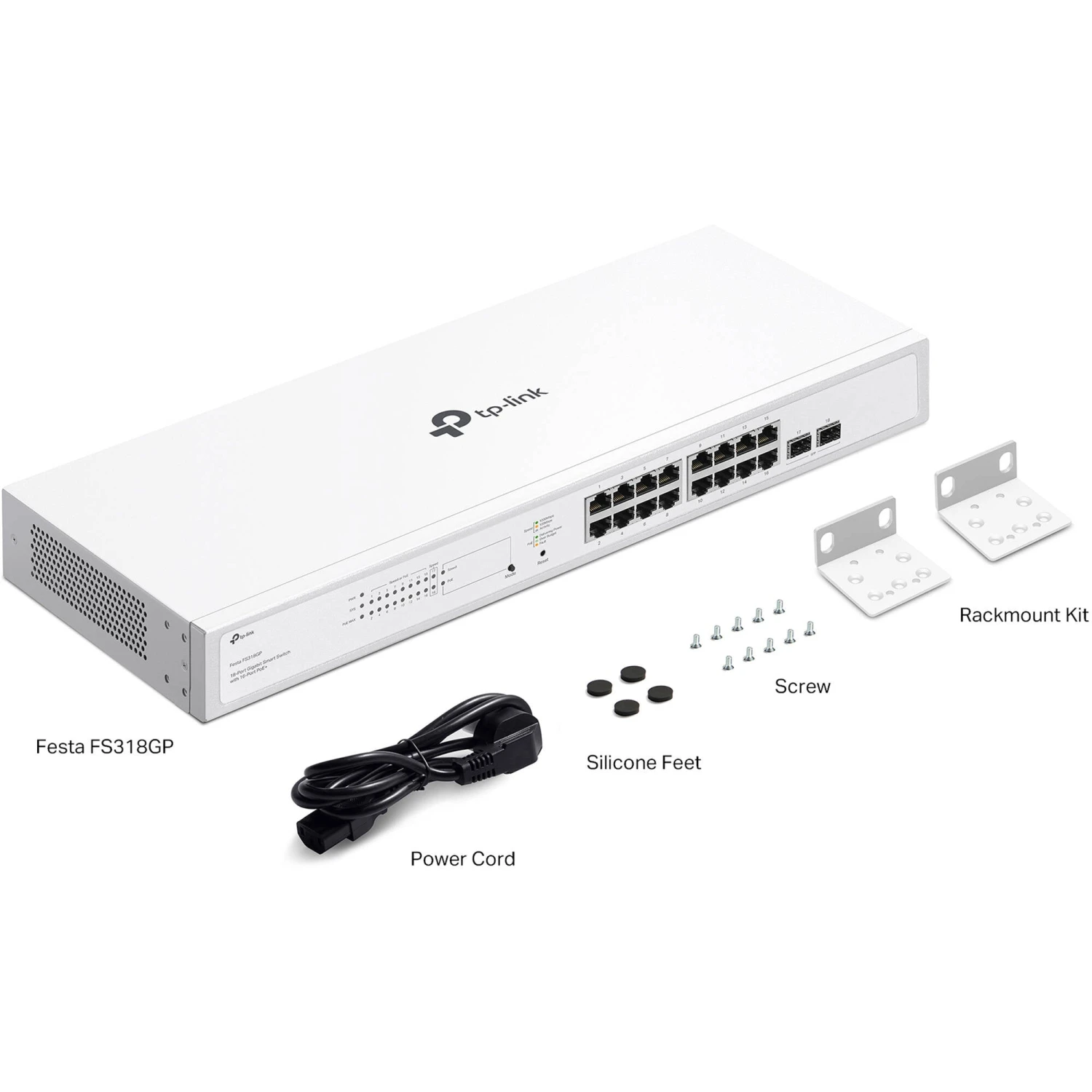 - TP-Link Festa FS318GP 16-Port PoE+ Compliant Gigabit Managed Network Switch with SFP