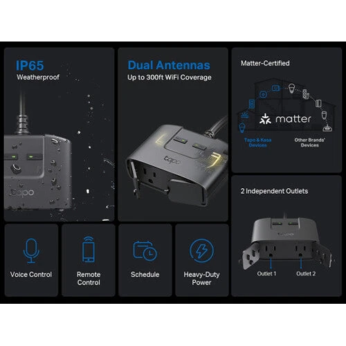 - TP-Link Tapo P400M Smart Outdoor Wi-Fi Plug (Matter)