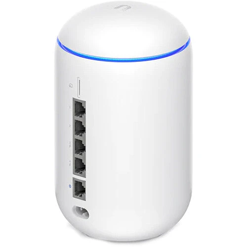 Designed primarily for home users and offices, the versatile UniFi Dream AX3000 Wireless Dual-Band Router from Ubiquiti Networks delivers reliable, high-speed connectivity for your connected devices. Supporting up to 2.4 Gb/s data transfer speeds on the 5 GHz band and 600 Mb/s over the 2.4 GHz frequency with compatible devices, this Wi-Fi 6 (802.11ax) router provides the bandwidth for smooth 4K video streaming, online games, and more. Your wireless network is secured with WPA3 encryption. Four Gigabit Ethernet LAN ports are available, two of which support 15.4W PoE each with a total power budget of 32W, providing data and power to compatible devices such as VoIP phones and security cameras over a single cable.