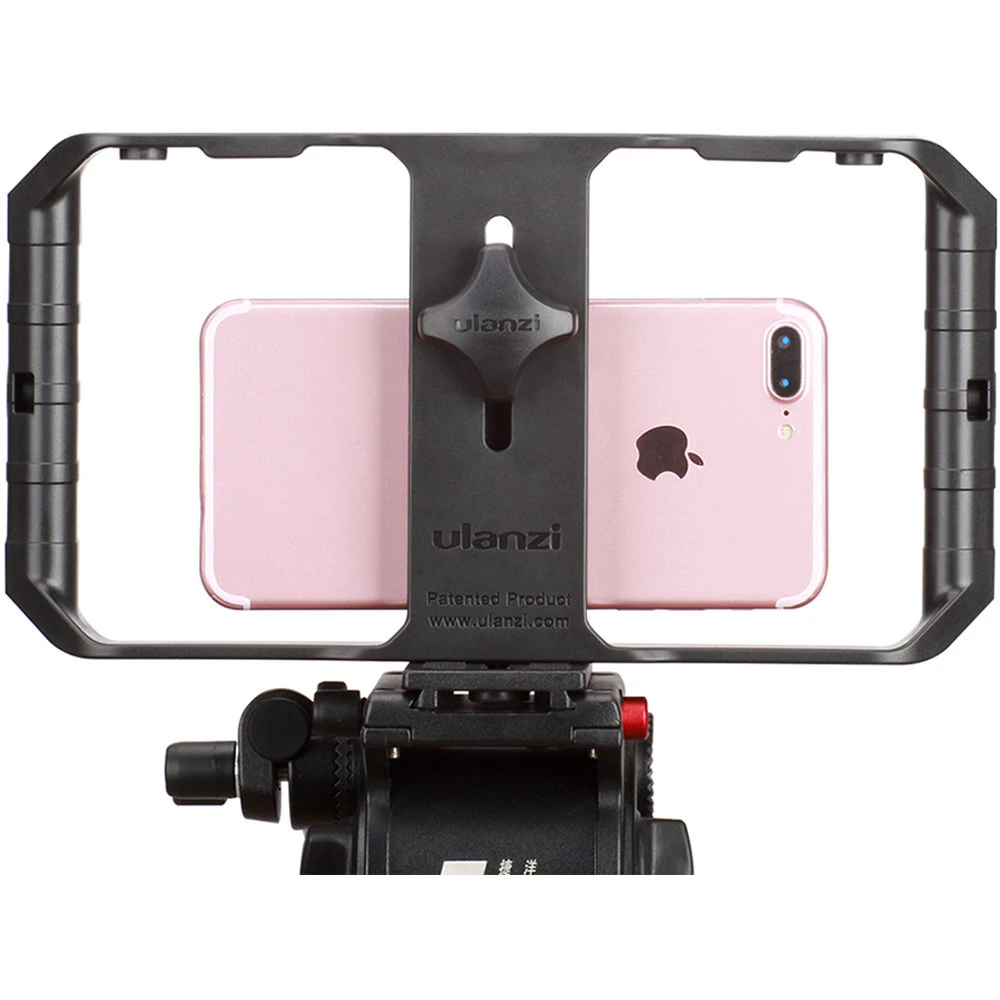 With the U-Rig Pro Smartphone Rig from Ulanzi , you can transform your smartphone into a portable handheld video rig. Your smartphone is designed to easily mount inside the rig via a spring clip and a built-in screw to lock it into place. The spring clip can hold smartphones from 2.0″ to 3.5″ wide.