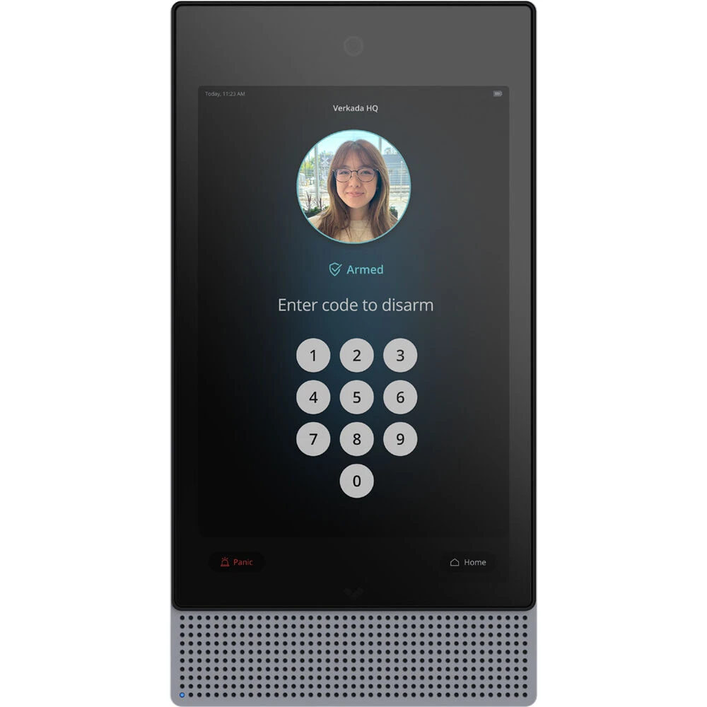 Monitor your worksite and manage your alarm system with the Verkada Alarm Console. This device features a 10.1″ multi-touch display that accepts situational keypad inputs; use keypad entry to arm and disarm alarms, enter a duress code, or hit a panic summary, depending on the circumstances. A built-in 90 dB siren alerts intruders to an incoming security response. Record all interactions and communicate with staff and visitors through the integrated camera and speaker.