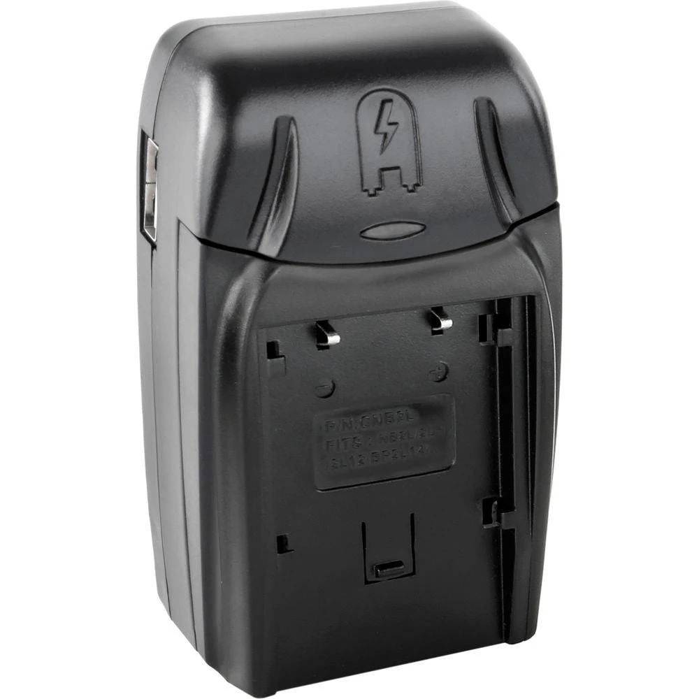 The Compact AC/DC Charger features a USB power output that allows you to charge & power MP3 players, phones, digital cameras, and other devices with a USB power input – even while charging your camera or camcorder batteries. With its easily interchangeable plate, the charger can also be used for other battery models – via the purchase of an additional battery adapter plate.