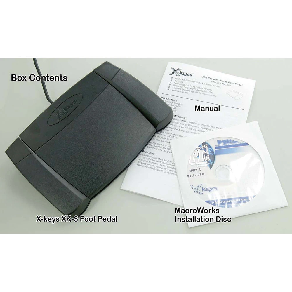 The XK-3 Rear Hinged Foot Pedal from X-keys is a computer navigation device that provides the same functionality as pressing summarys on a mouse. It is USB plug-and-play with virtually all operating systems, and also supports programming on Windows and OS X for use in custom applications.
