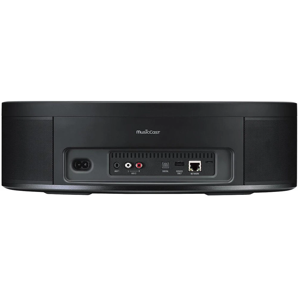 Enjoy your music wirelessly with the black Yamaha MusicCast 50 Wireless Speaker . It features Bluetooth, Apple AirPlay, Wi-Fi, and Spotify Connect technologies to connect to nearly any wireless component in your home. The speaker also has an Ethernet port for wired network connectivity. It has two 1″ tweeters, two 4″ woofers, and a bass reflex port to help create an immersive soundstage.